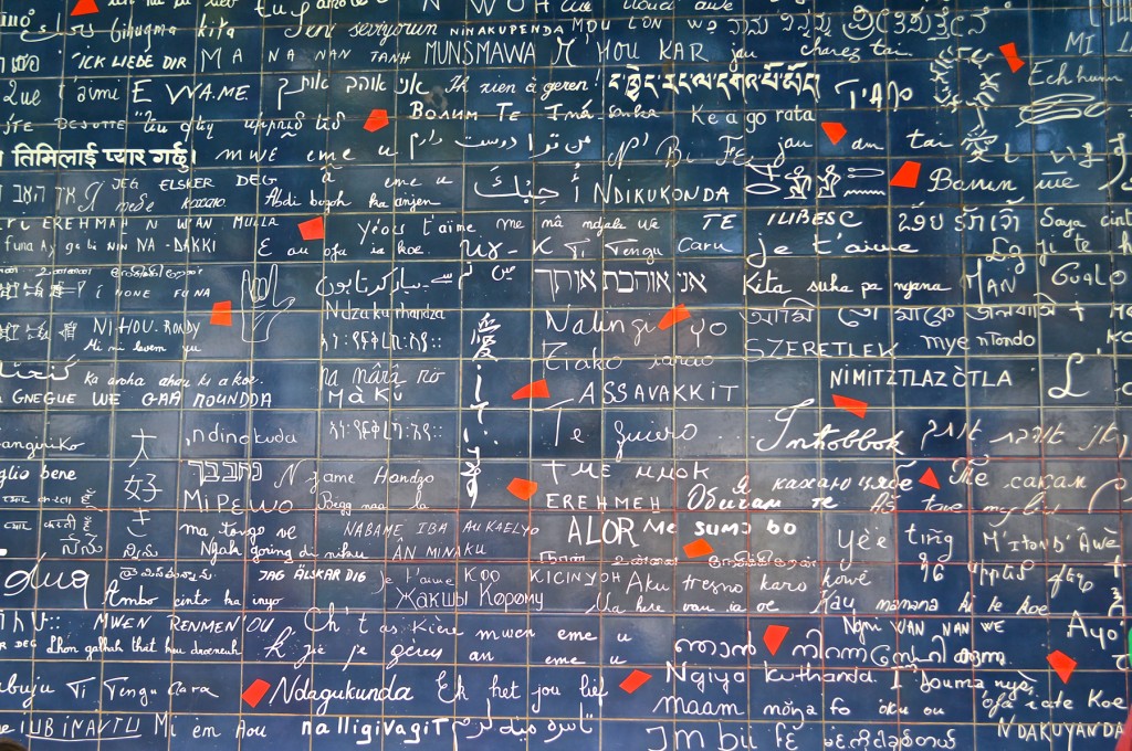 Puis nous passons par le square des Abbesses, voir le mur des « je t’aime », un monument de 40m2 en lave émaillée où fleurissent 311 « JE T’AIME » en 250 langues, construit à partir de 511 carreaux.